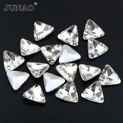 JUNAO 6mm 10mm 18mm üçgen şekli temizle kristal Strass olmayan düzeltme elmas Pointback cam Rhinestones konfeksiyon için