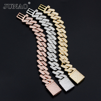 JUNAO altın gümüş gül altın kaplama pirinç zincir 20mm genişlik dikmek-on Hip Hop küba bağlantı elmas bilezik kolye erkekler kadınlar için