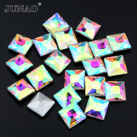 JUNAO toptan 8mm 10mm 12mm 14mm temizle kristal AB Strass fantezi kare elmas Pointback cam taklidi elbise için